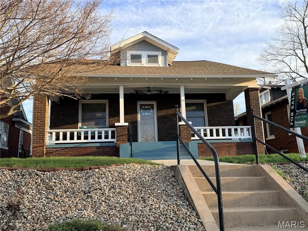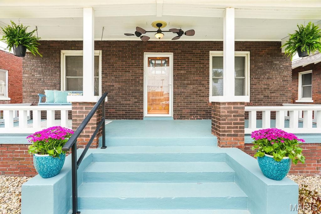 Don't miss this charming early-1900s Craftsman just blocks from downtown Edwardsville! Blending historic character with thoughtful updates, this home is one of three original residences on this stretch of Park Street and reflects the area's transition from the historic Crocker Gardens into a sought-after neighborhood.Relax on the inviting covered front porch with swing, then step inside through the original front door to find beautiful hardwood floors and timeless architectural details. The dining room features stunning stained glass French doors-an authentic focal point you simply don't find every day. The cozy living room with gas fireplace creates the perfect space to unwind, while the updated kitchen offers an ideal balance of style and function for everyday living and entertaining.Out back, enjoy your own private retreat with a fully fenced yard, brick patio, waterfall feature, and mature landscaping-perfect for relaxing or hosting.Upstairs, the spacious primary suite feels like a true escape, complete with a sitting area, private bath, and an oversized walk-in closet. The basement provides ample storage along with a versatile bonus room and two walk-up exits.A rare opportunity to own a piece of Edwardsville history with timeless charm and an unbeatable location!