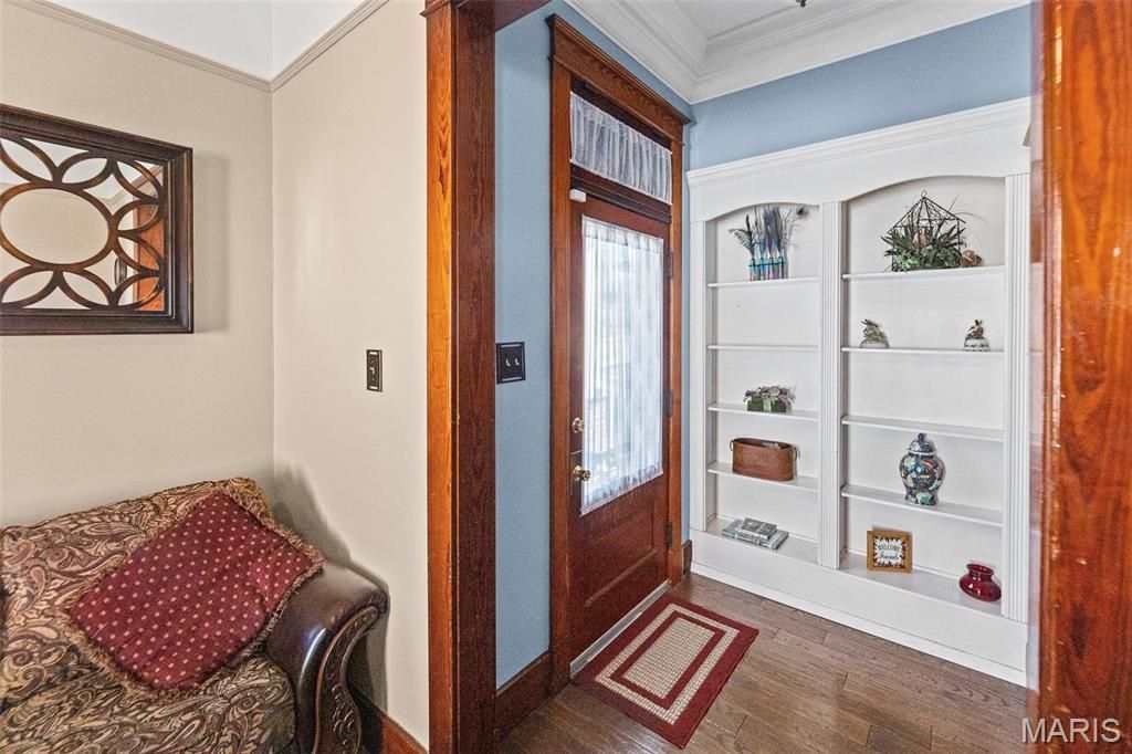 Welcome to this 2 bed, 1.5 bath charming home in a sought-after historic Edwardsville neighborhood! Step inside to discover 10-foot ceilings throughout the main level and beautiful hardwood floors highlighting the timeless character of the home. Original stained woodwork and working transoms adds the warmth, craftsmanship and functionality you don't find today. The lower level offers a large family room, half bath, laundry area and plenty of storage space, plus a bonus room that could be used as a home office or possible third bedroom. A spacious attic area provides endless potential for future expansion or additional storage. Outside you'll find a fenced in backyard that's perfect for pets and relaxation. The property also includes an oversized two-car garage with an attached carport that can double as a covered patio. Additional highlights include a NEW roof (2025), a NEW HVAC system (2024), walk-up basement and pet door. All appliances including downstairs refrigerator stay. A rare opportunity to own a home full of historic charm, space and potential - schedule your showing today!