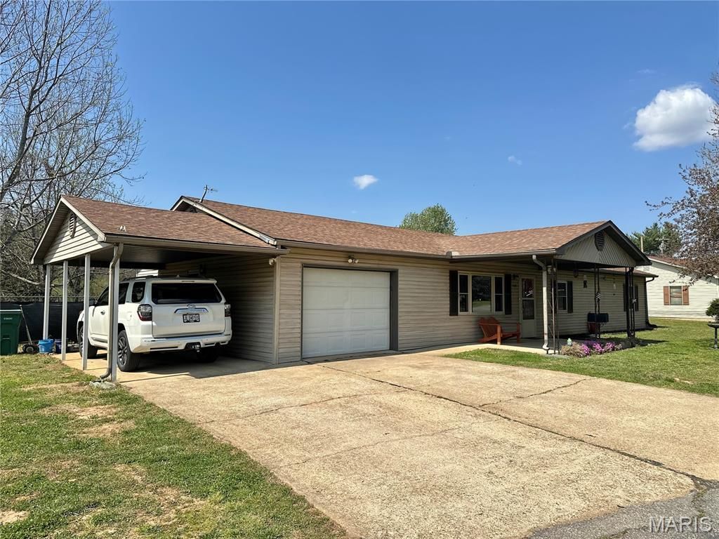 **Virtual Tour Available!!!** Check the listing details for a virtual tour or media link to view the full experience.Tucked at the end of a quiet dead-end street in the peaceful town of Thayer, this charming 3-bedroom, 2-bath home offers comfort, space, and beautiful scenery. A rare find sitting on just over half an acre, on a double lot within city limits. With approximately 1,400 sq ft, this home features an open living, dining, and kitchen layout, brand-new flooring with fresh paint throughout, new HVAC system and an updated kitchen ready for everyday living. The attached 30x15 garage and additional carport provide excellent parking and storage options. Step outside to a fenced-in backyard with a covered patio where you can relax and take in the gorgeous valley views or tend to your growing garden. Conveniently located near local schools, churches, businesses, and with easy highway access, this home offers the perfect blend of peaceful living and convenience. Plenty of room for a growing family to settle in and make lasting memories. Schedule a showing today!